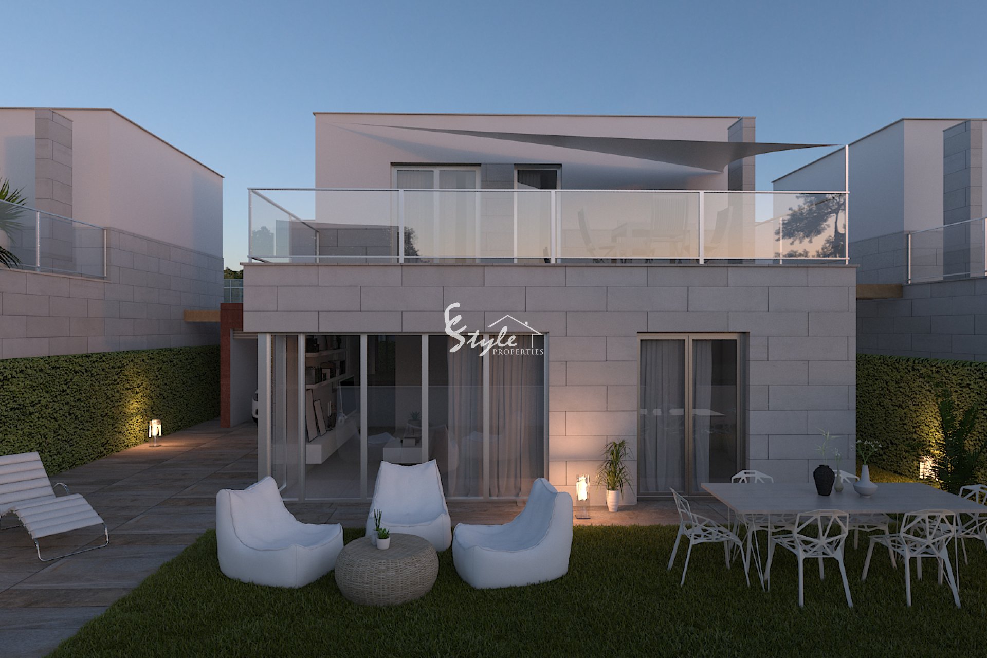 Внешний дизайн этих отдельных домов в Лос-Алькасарес сосредоточен на интеграции с природной средой и предоставлении открытых пространств, которые максимизируют удовольствие от средиземноморского климата. Каждое имущество имеет частный сад, идеально подходящий для создания личного оазиса спокойствия или для наслаждения встречами на открытом воздухе. Терраса, важный элемент этих домов, предлагает дополнительное пространство для отдыха или обедов на свежем воздухе, в то время как солярий предоставляет идеальное место для принятия солнечных ванн в полной приватности. Близость к морю, всего в 1 км, позволяет наслаждаться открытыми видами и морским бризом, делая внешние пространства идеальным местом для отдыха и досуга.
