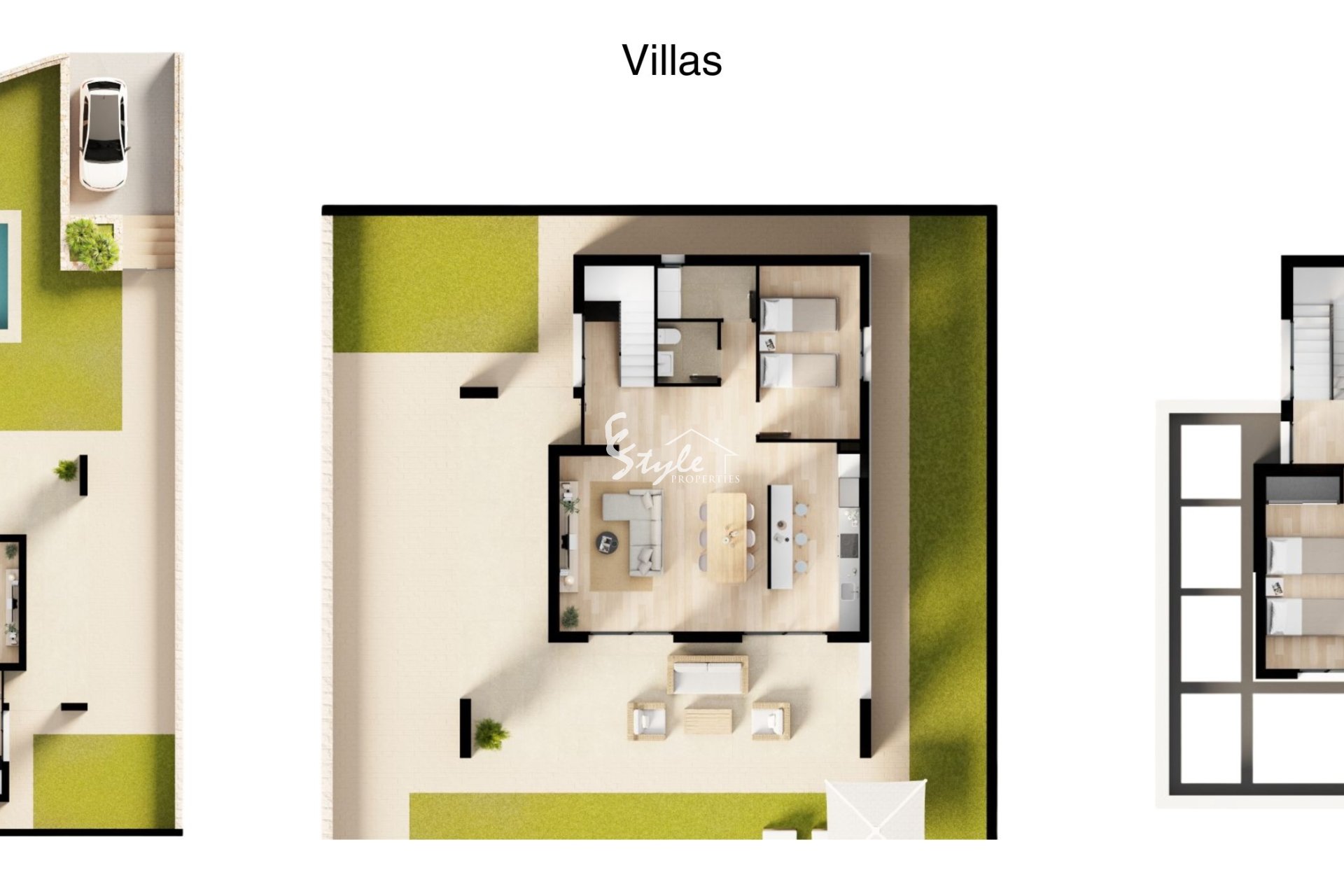 Внешние пространства объектов в этом жилом комплексе спроектированы для максимального наслаждения средиземноморским климатом. Каждое жилье имеет террасу, идеальную для отдыха на свежем воздухе или семейных обедов. Кроме того, многие из объектов включают солярий, предоставляющий дополнительное пространство для принятия солнечных ванн или наслаждения панорамными видами. Частные сады являются еще одной выдающейся особенностью, предлагая каждому жителю личное зеленое пространство. Для тех, кто ищет дополнительный штрих роскоши, некоторые дома имеют частный бассейн, идеально подходящий для охлаждения в жаркие дни. Включение пергол добавляет эстетический и функциональный элемент, обеспечивая тень и уютное место для отдыха.