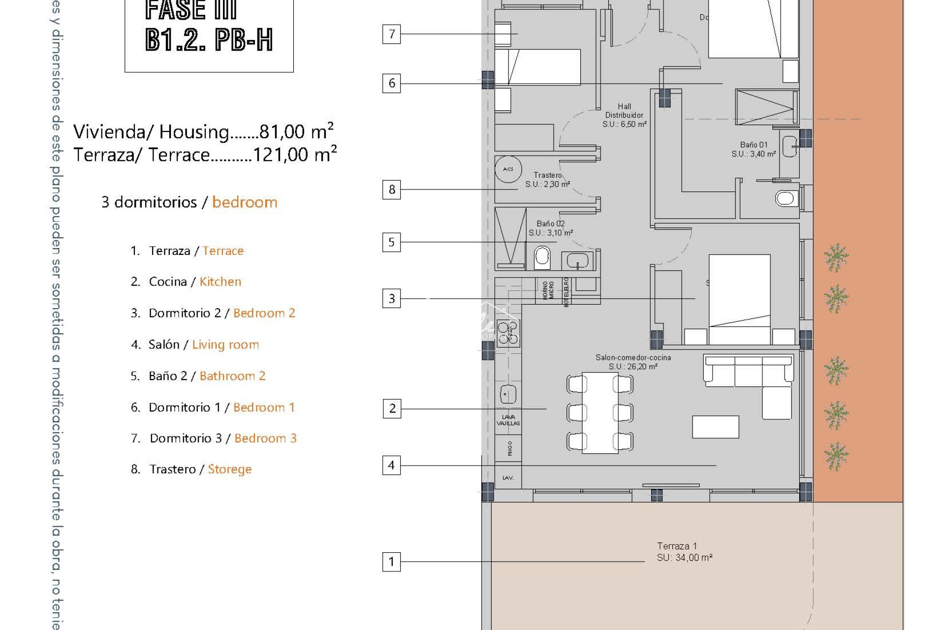 Внутри жилье оснащено современными характеристиками, обеспечивающими комфорт и стиль. Квартиры и пентхаусы предлагают варианты с 2 или 3 спальнями и 2 или 3 ванными комнатами, адаптируясь к различным семейным потребностям. Полы из керамогранита придают элегантность и легки в уходе. Кухни оснащены бытовой техникой, что облегчает повседневную жизнь. Встроенные шкафы обеспечивают эффективное хранение, а предварительная установка кондиционера обеспечивает приятную атмосферу круглый год. Кроме того, предлагается возможность приобрести гараж, добавляя удобство и безопасность.