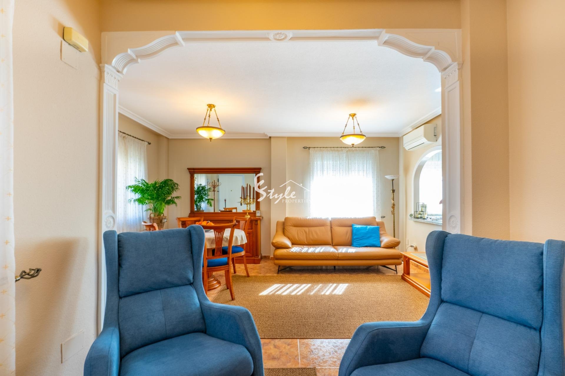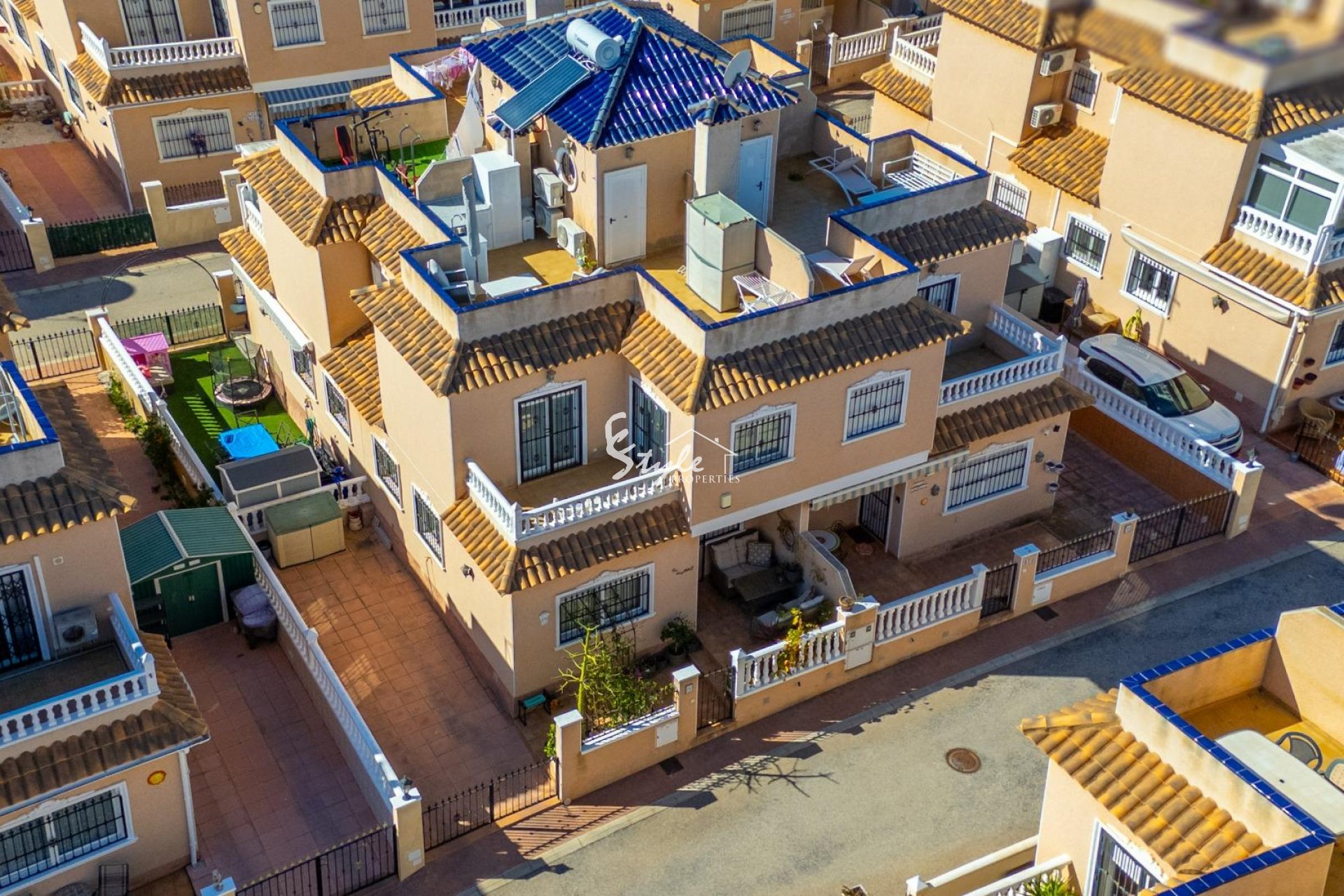 Представляем вашему вниманию этот очаровательный дуплекс в жилом комплексе Residencial Vista Azul в Ориуэла Коста — одном из самых востребованных районов Коста-Бланки. Расположенный в престижной жилой зоне, он позволяет наслаждаться средиземноморским климатом в спокойной обстановке и вести активный, здоровый образ жизни.~~Дом имеет удобную планировку на двух этажах плюс солярий. В нем есть просторная и светлая меблированная гостиная с камином, современная полностью оборудованная кухня открытого типа, 2 спальни и 2 полностью оборудованные ванные комнаты. Также имеется светлая терраса с зоной отдыха и ухоженный сад с пространством для отдыха и парковочным местом на участке. Включено частное кладовое помещение. Одним из преимуществ дома являются солнечные панели.~~Комплекс Residencial Vista Azul с бассейном и зелёными зонами. Он находится примерно в 1 км от моря и в 1700м от торгового центра La Zenia Boulevard, рядом со всеми необходимыми услугами: супермаркеты, рестораны, магазины и аптеки.~Идеальное расположение благодаря спокойной атмосфере, хорошим пляжам и отличному климату — подходит как для постоянного проживания, так и для инвестиций.~~Цена недвижимости не включает нотариальные сборы, расходы на регистрацию и применимые налоги, которые зависят от стоимости объекта и действующих правил в Comunidad Valenciana.