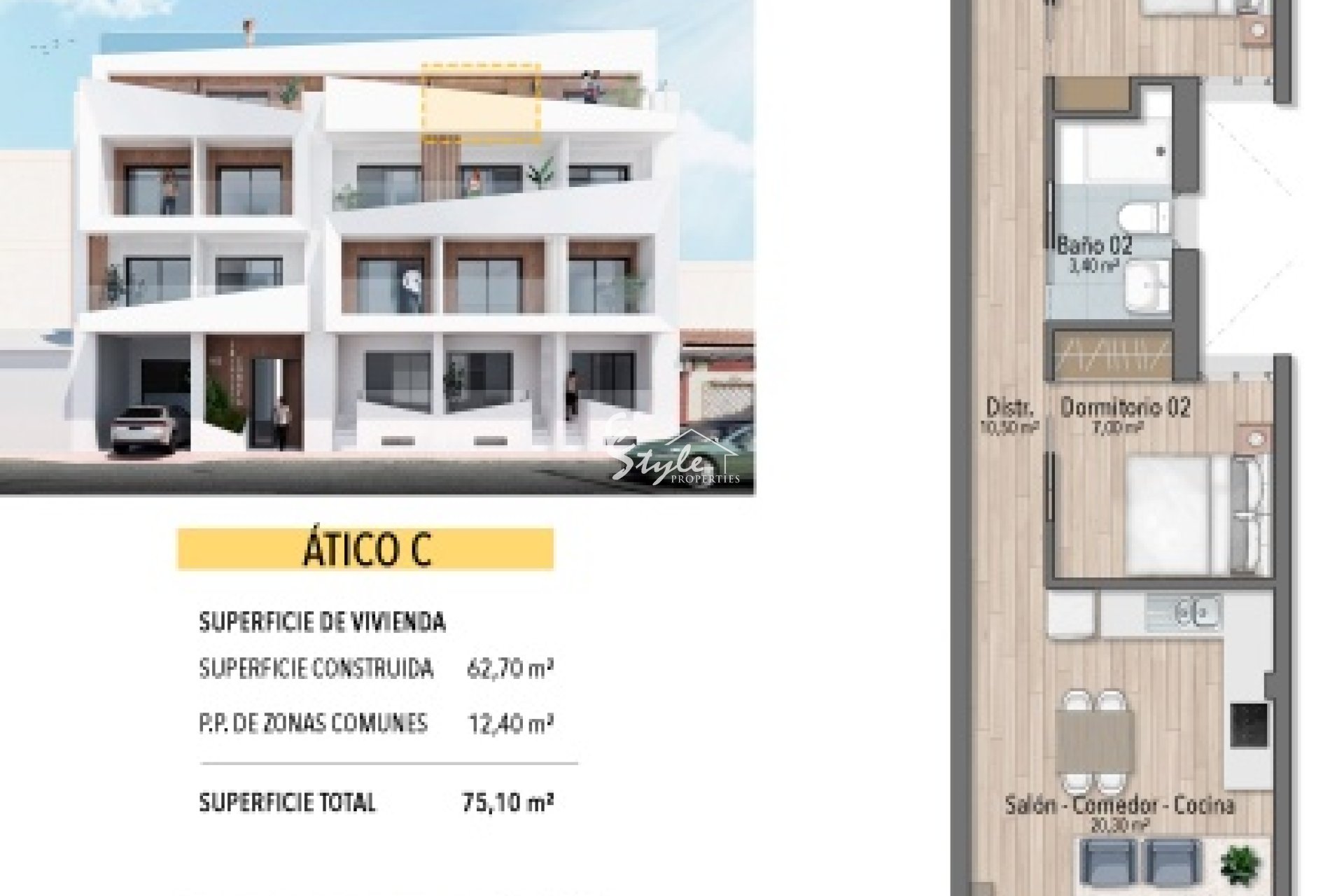 Внутри недвижимость предлагает функциональную и современную планировку. Квартиры, первые этажи и пентхаусы доступны в конфигурациях с 1 или 2 спальнями и 1 или 2 ванными комнатами, адаптированными к различным стилям жизни. Полы из керамогранита придают элегантность и долговечность. Жилье оснащено бытовой техникой, что облегчает повседневную жизнь. Кроме того, имеются встроенные шкафы, оптимизирующие пространство для хранения. Включение солярия в некоторых типах добавляет дополнительное пространство для отдыха и релаксации.