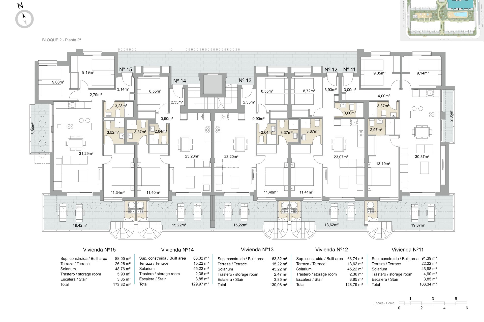 Экстерьеры этих объектов спроектированы для максимального наслаждения средиземноморским климатом. Каждое жилье имеет террасу, идеальную для отдыха на свежем воздухе или семейных обедов. Кроме того, некоторые типы включают частный сад, предоставляя дополнительное зеленое пространство для отдыха или садоводства. Для тех, кто ищет панорамные виды, Пентхаусы предлагают солярий, идеальный для принятия солнечных ванн или созерцания окружающей среды. Расстояние всего 2 км до моря позволяет наслаждаться морским бризом и прогулками по побережью в любое время.