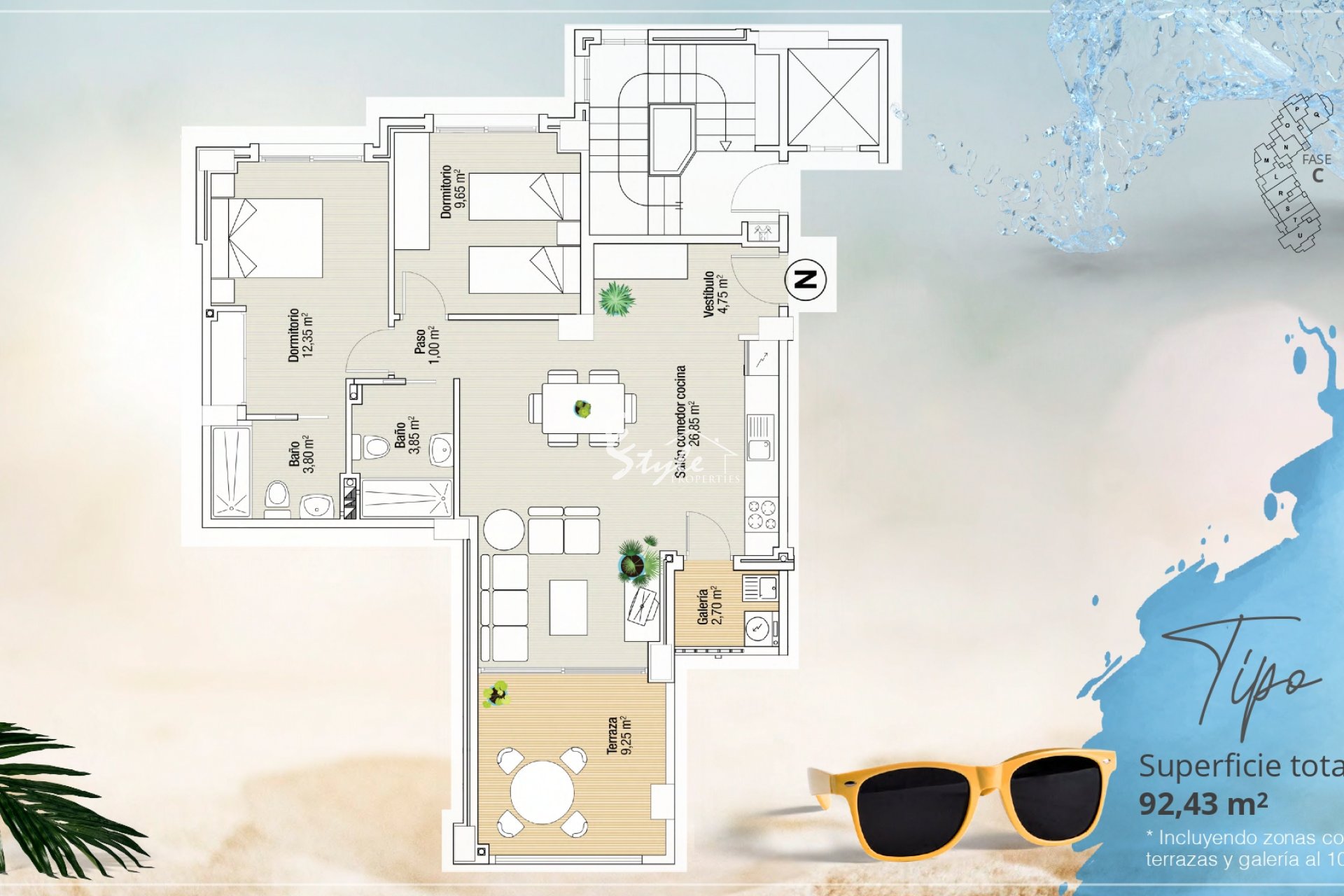 Интерьер жилья тщательно продуман для максимального комфорта и функциональности. Квартиры и пентхаусы доступны в конфигурациях с 1, 2 и 3 спальнями, с 1 или 2 ванными комнатами, адаптированными к потребностям каждого жителя. Керамические полы придают современный вид и легки в уходе. Кондиционер и дополнительная предустановка обеспечивают приятную атмосферу круглый год. Электрические жалюзи и видеодомофон добавляют дополнительный уровень комфорта и безопасности. Встроенные шкафы оптимизируют пространство для хранения, поддерживая порядок и организацию в доме.