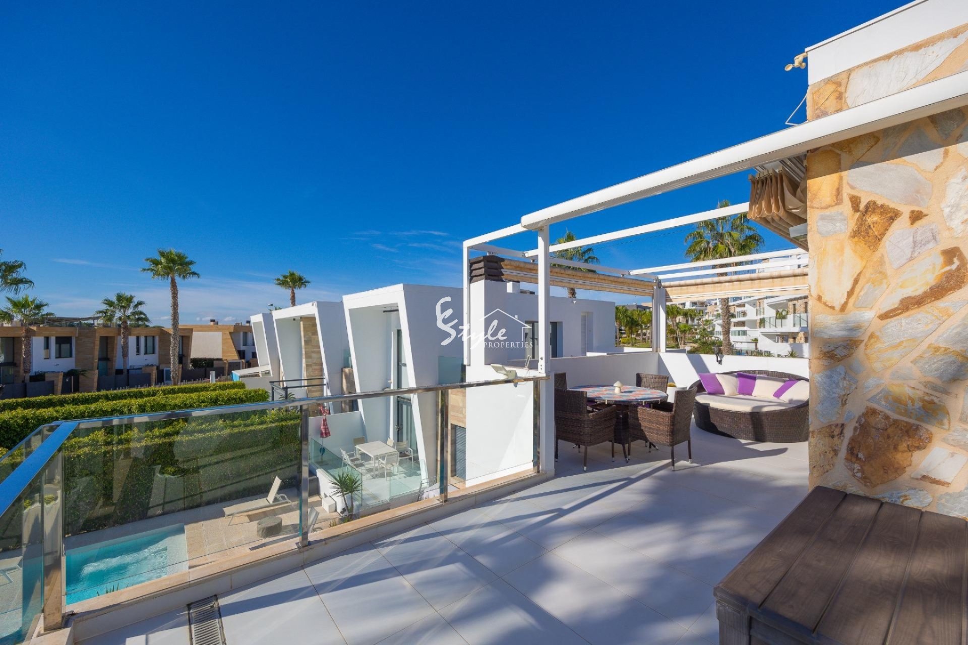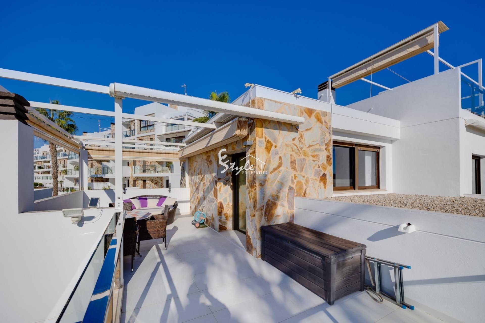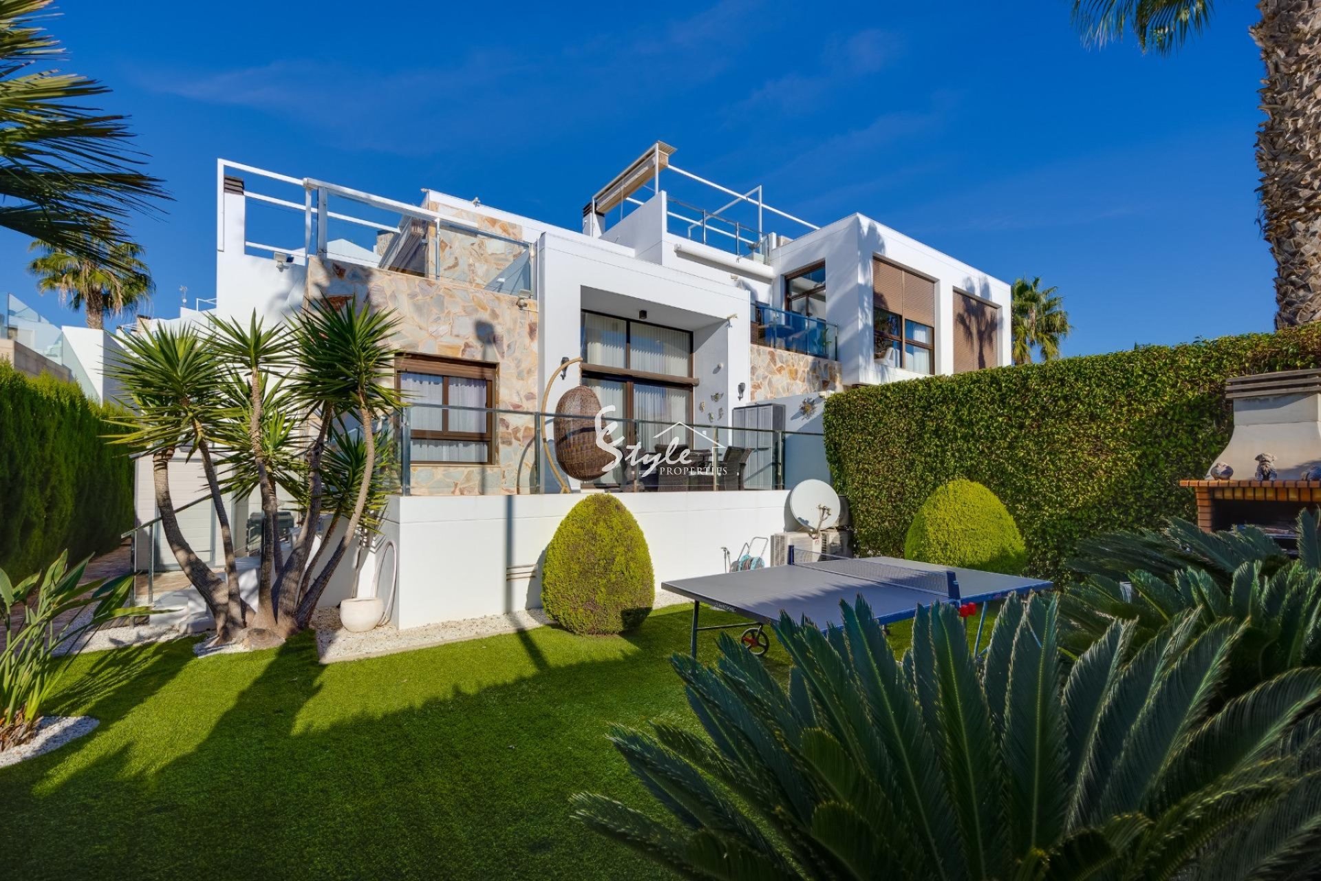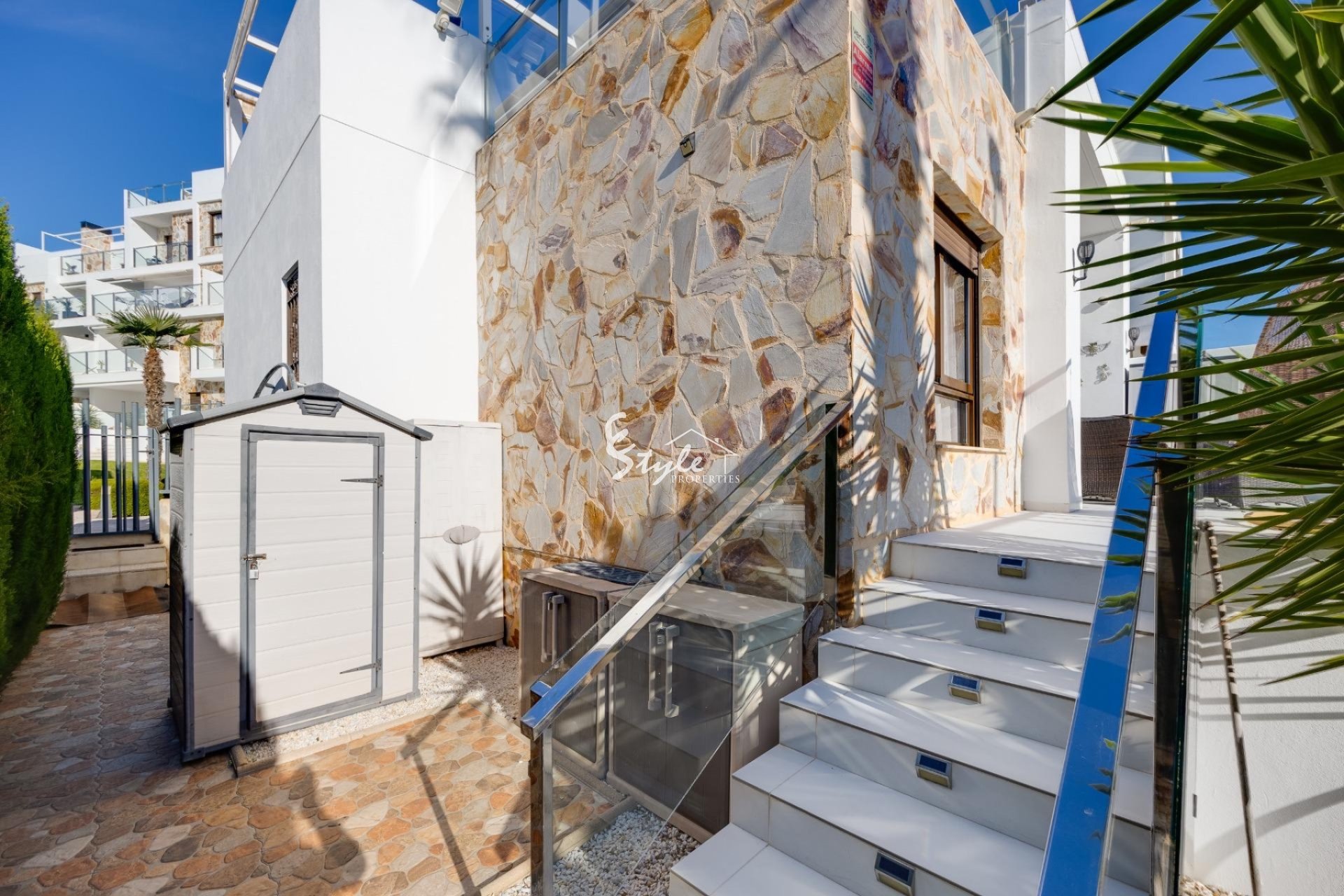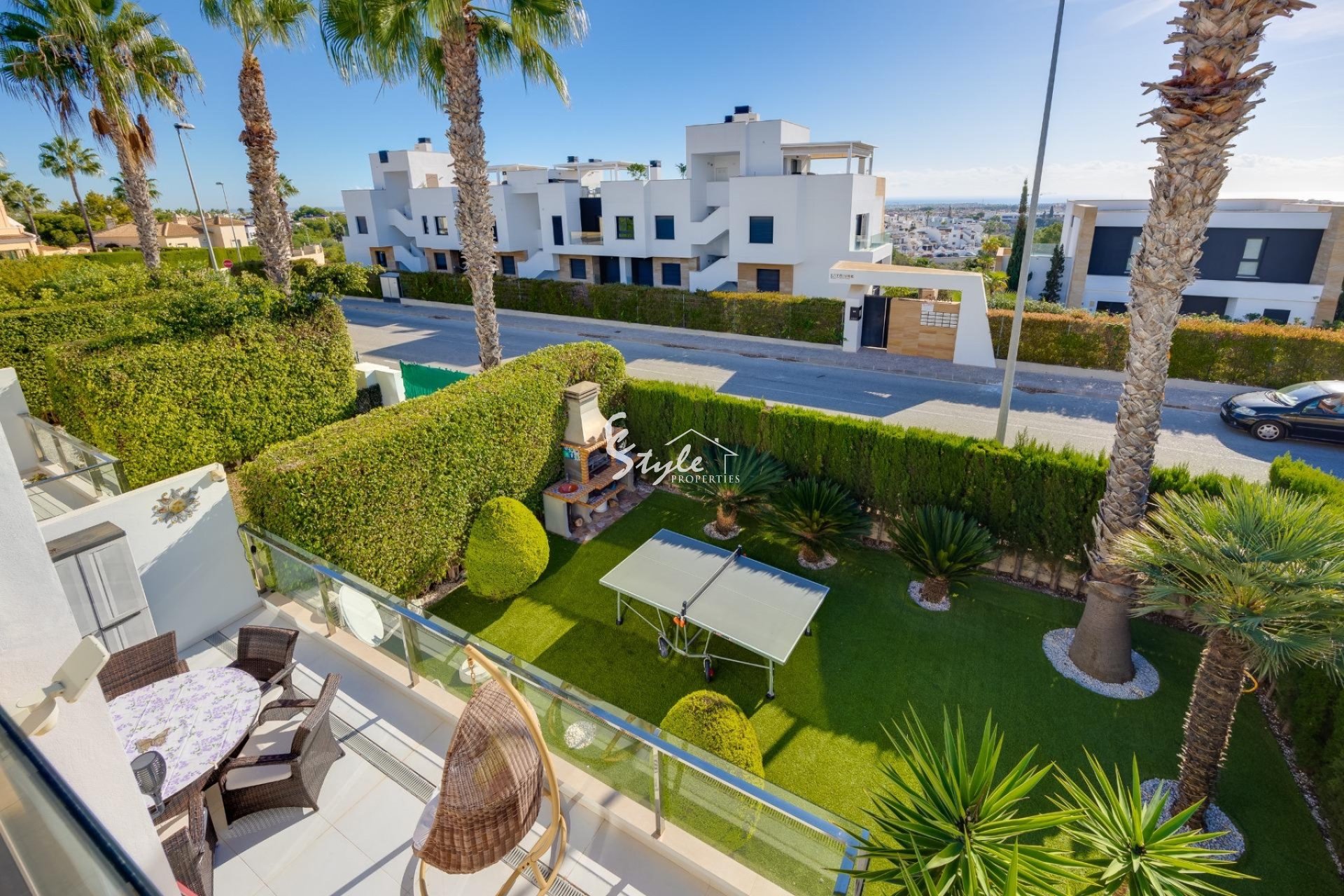 Предлагается к продаже современный угловой дуплекс, расположенный в тихой урбанизации района Вилламартин (Ориуэла Коста). Дом построен в 2013 году и находится в отличном состоянии — идеальный вариант для жизни и инвестиций на Коста-Бланка.