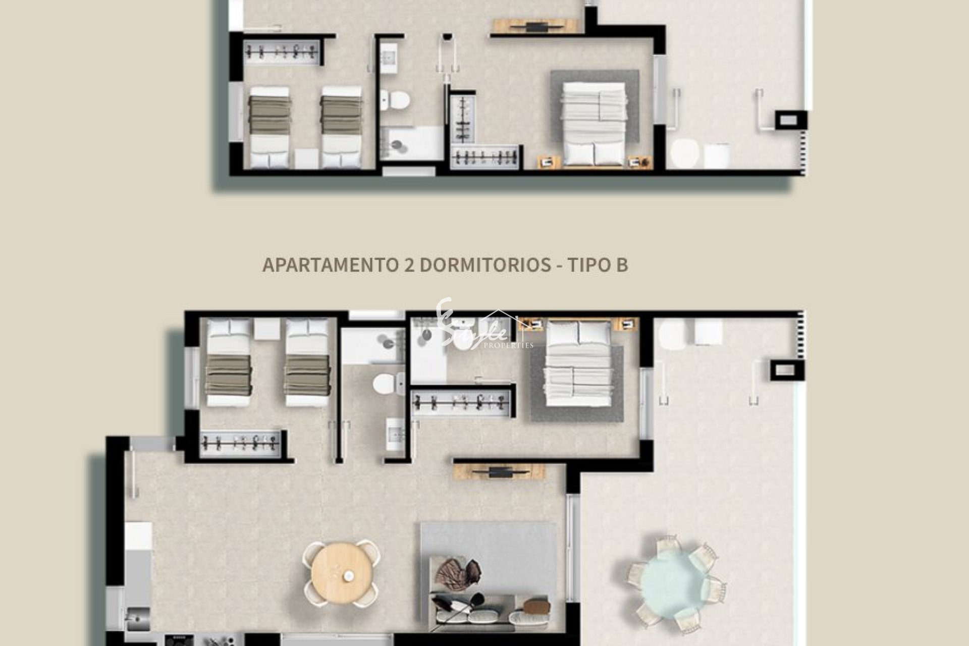 Жилье оснащено современными функциями, которые гарантируют высокий уровень комфорта. Керамические полы придают элегантность и долговечность, а электрические жалюзи и встроенная бытовая техника облегчают повседневную жизнь. Встроенные шкафы оптимизируют пространство для хранения, поддерживая порядок и функциональность. Планировки включают жилье с 2 и 3 спальнями, с 2 или 3 ванными комнатами, адаптированное к различным размерам семей и личным предпочтениям.