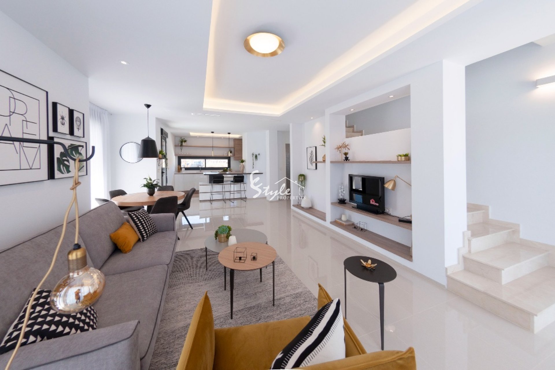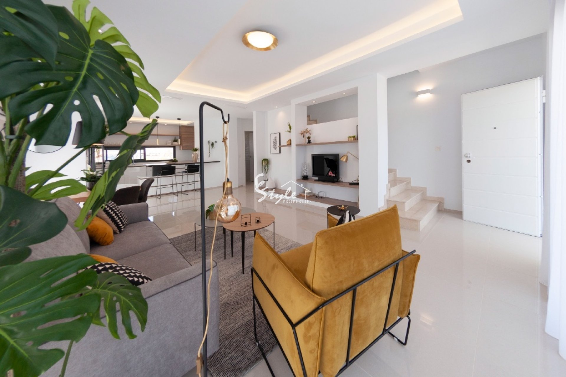 Новые таунхаусы на стадии строительства от застройщика в закрытом комплексе с большим бассейном на побережье Коста Бланка.