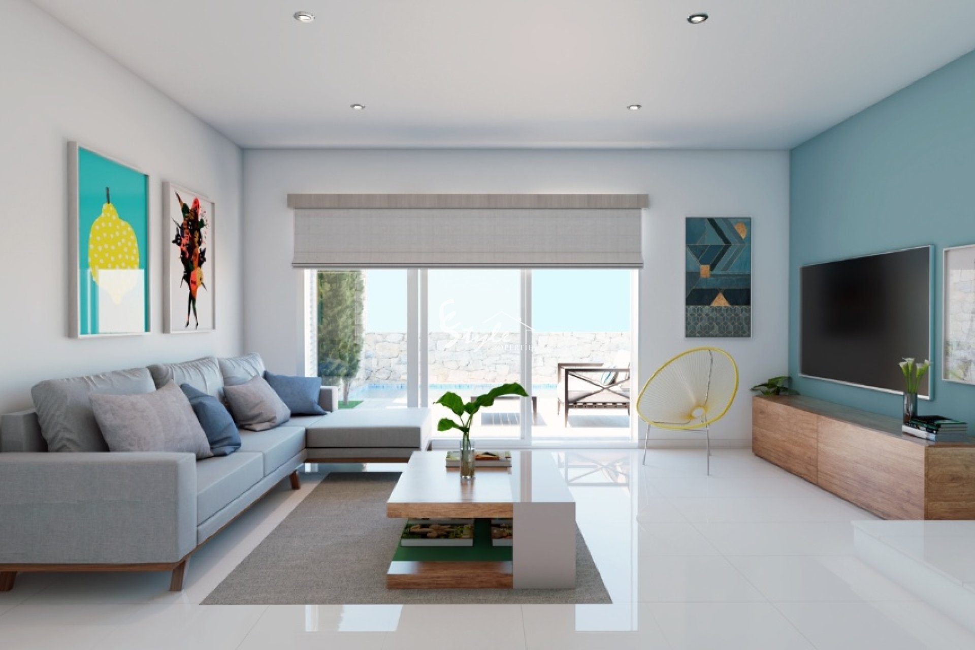 В каждой вилле 3 спальни, 2 ванные комнаты с подогревом пола, просторная гостиная со столовой, кухня, терраса и солярий. Снаружи дома расположен сад с частным бассейном.