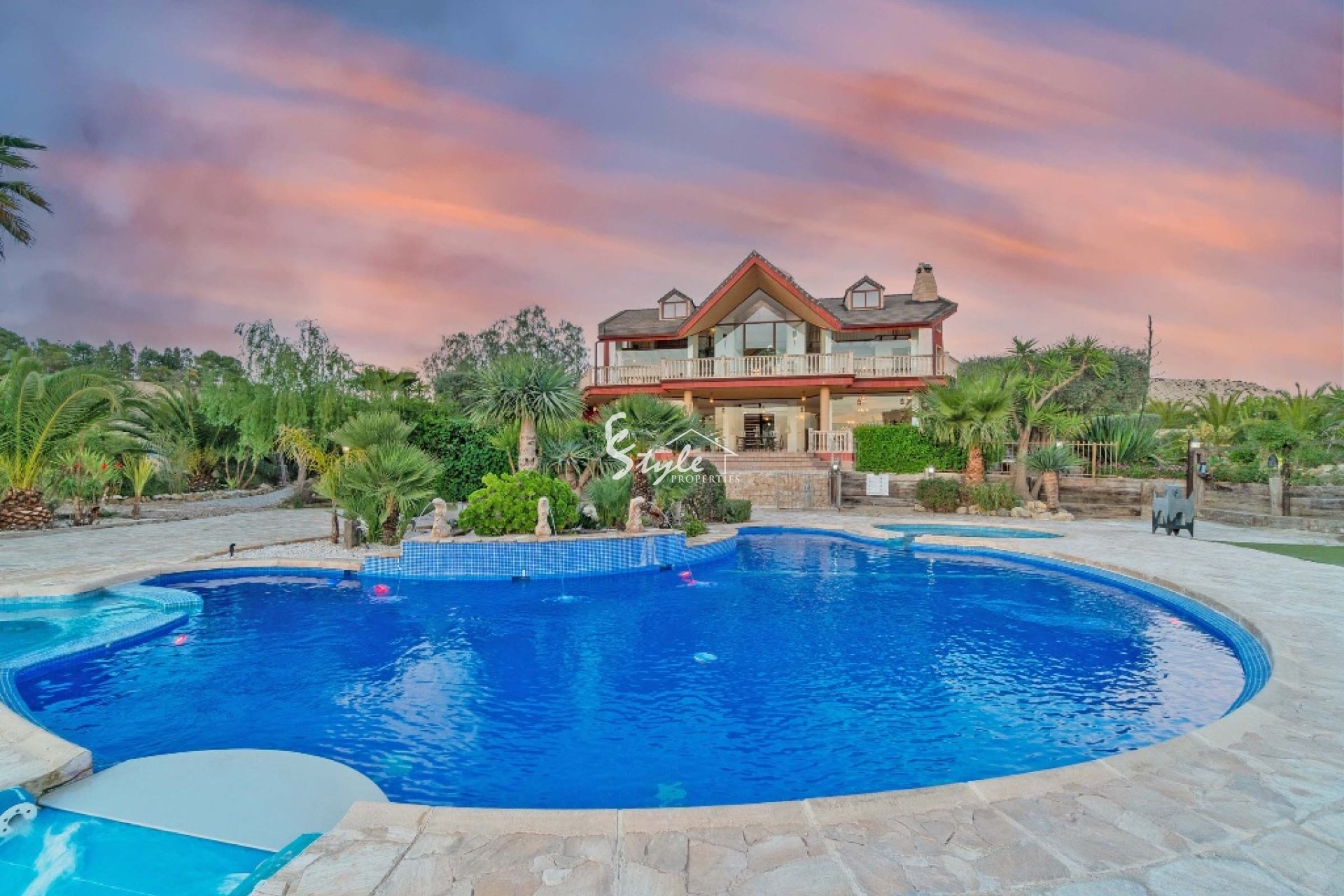 На территории площадью более 2 га вы найдете три бассейна на разных уровнях, бассейн для детей, верхний бассейн и нижний бассейн с батутом, 4-метровым трамплином и 4-метровой горкой; джакузи на 10/12 человек; 360-градусные террасы с большим пространством для отдыха; полностью оборудованная кухня и бар на открытом воздухе; длинный извилистый подъезд с охраняемым частным входом; обширная территория с безупречным ландшафтным дизайном; каменное патио с каменными ступенями; зрелый ландшафтный средиземноморский сад; многочисленные крыльца и патио.