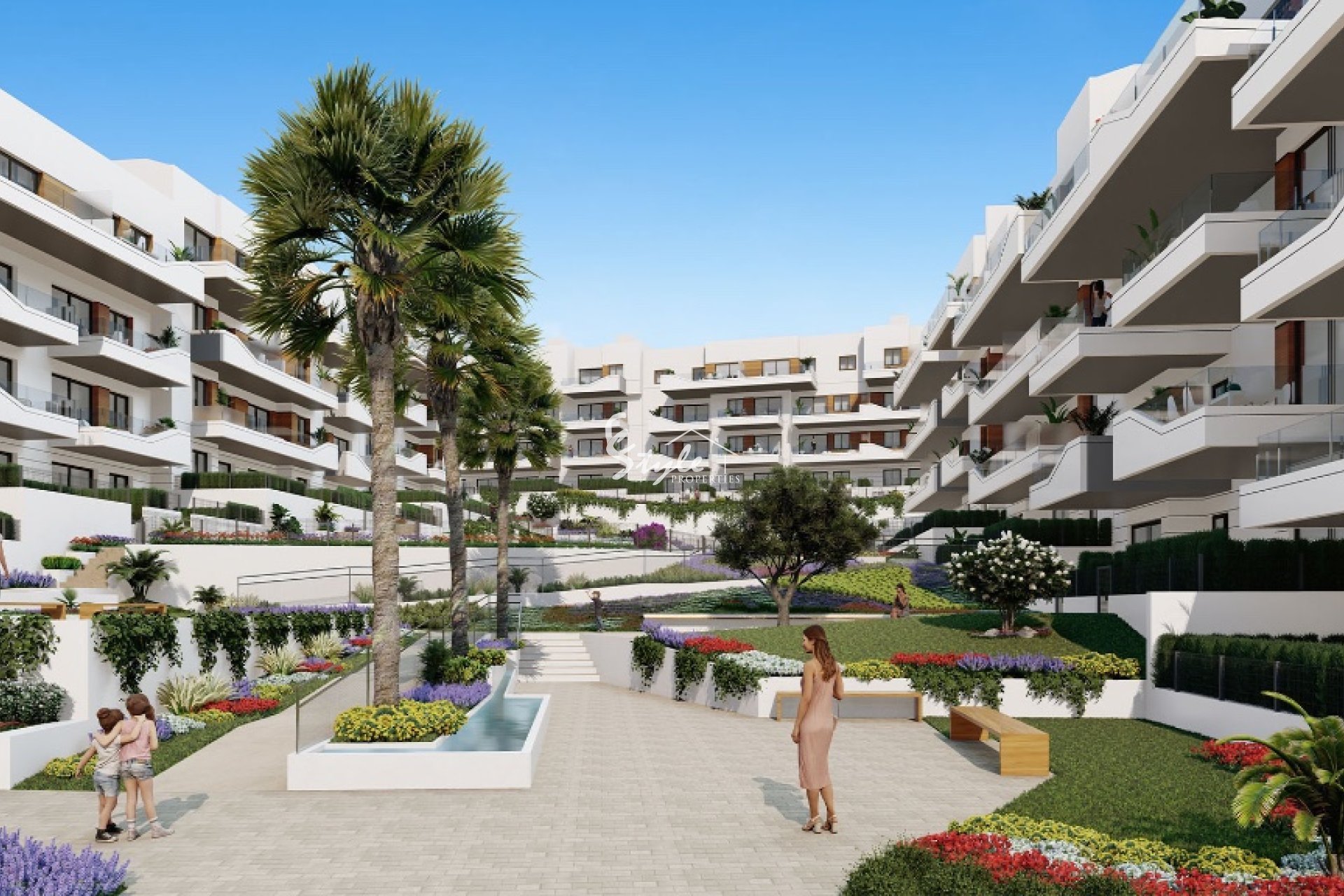 На продажу современные квартиры в закрытом жилом комплексе с бассейном и зелеными зонами отдыха в Вилламартине.