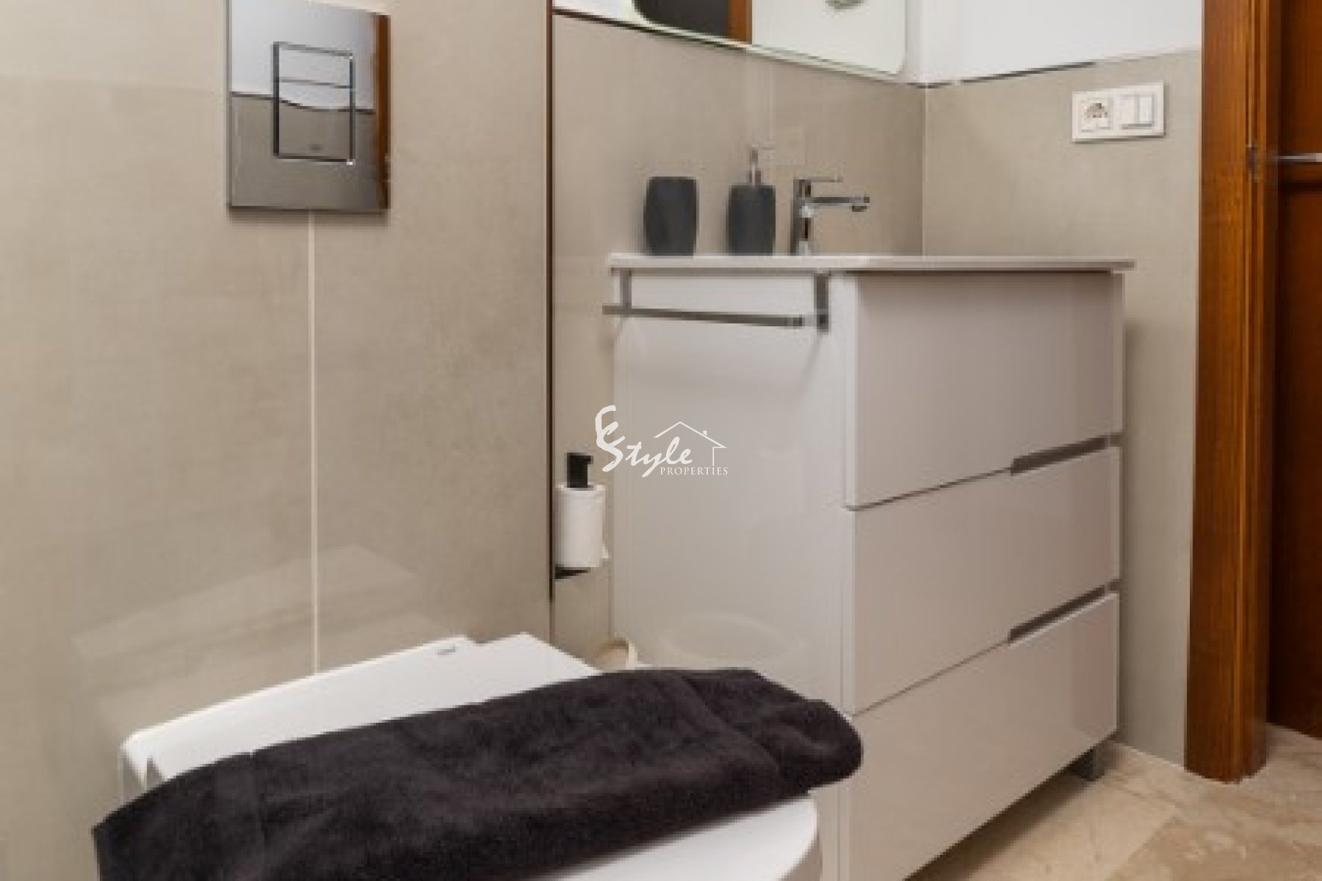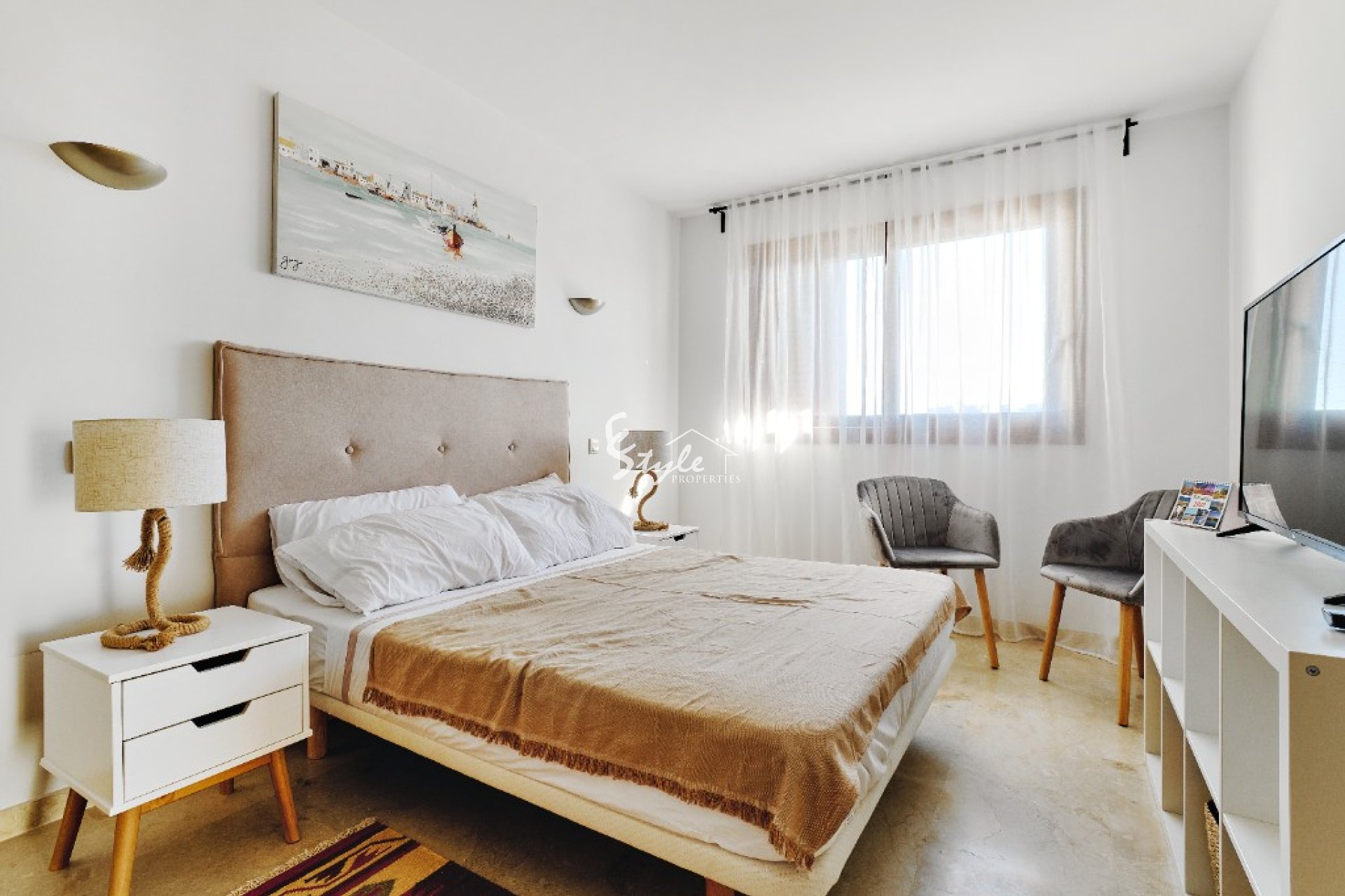 Апартаменты состоят из двух спален со встроенными шкафами, двух ванных комнат с подогревом пола (одна из которых сюит), полностью оборудованной кухни, солнечной гостиной и, конечно же, огромной террасы, откуда открываются живописные виды на море. Есть барбекю, также квартира располагает всем необходимым для комфортного отдыха и паркингом.