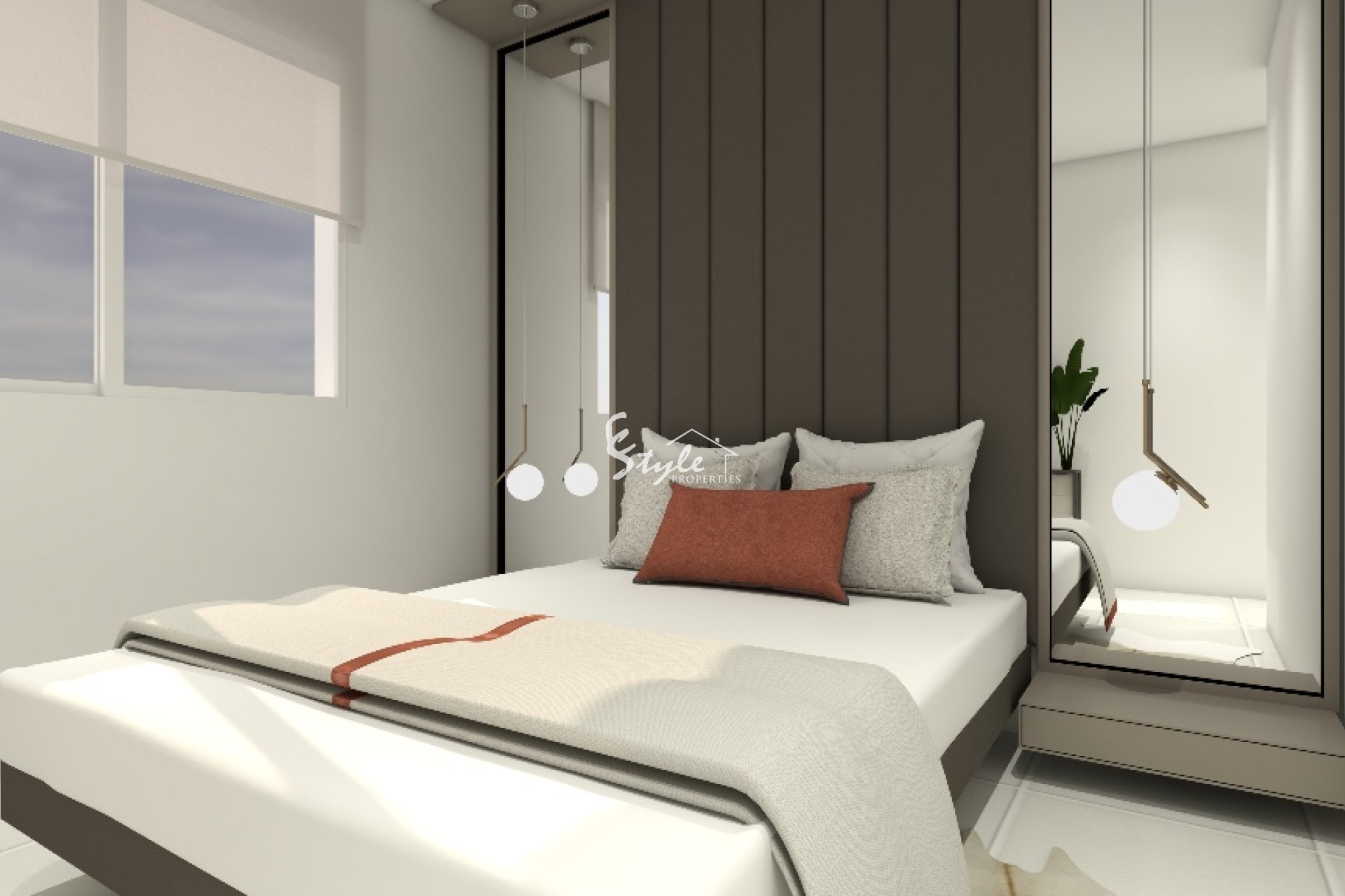 Новый закрытый комплекс состоит из апартаментов нескольких типов, нижний этаж с садом и верхний этаж с большой террасой на крыше, с 2 -3 спальнями и 2 ванными комнатами!