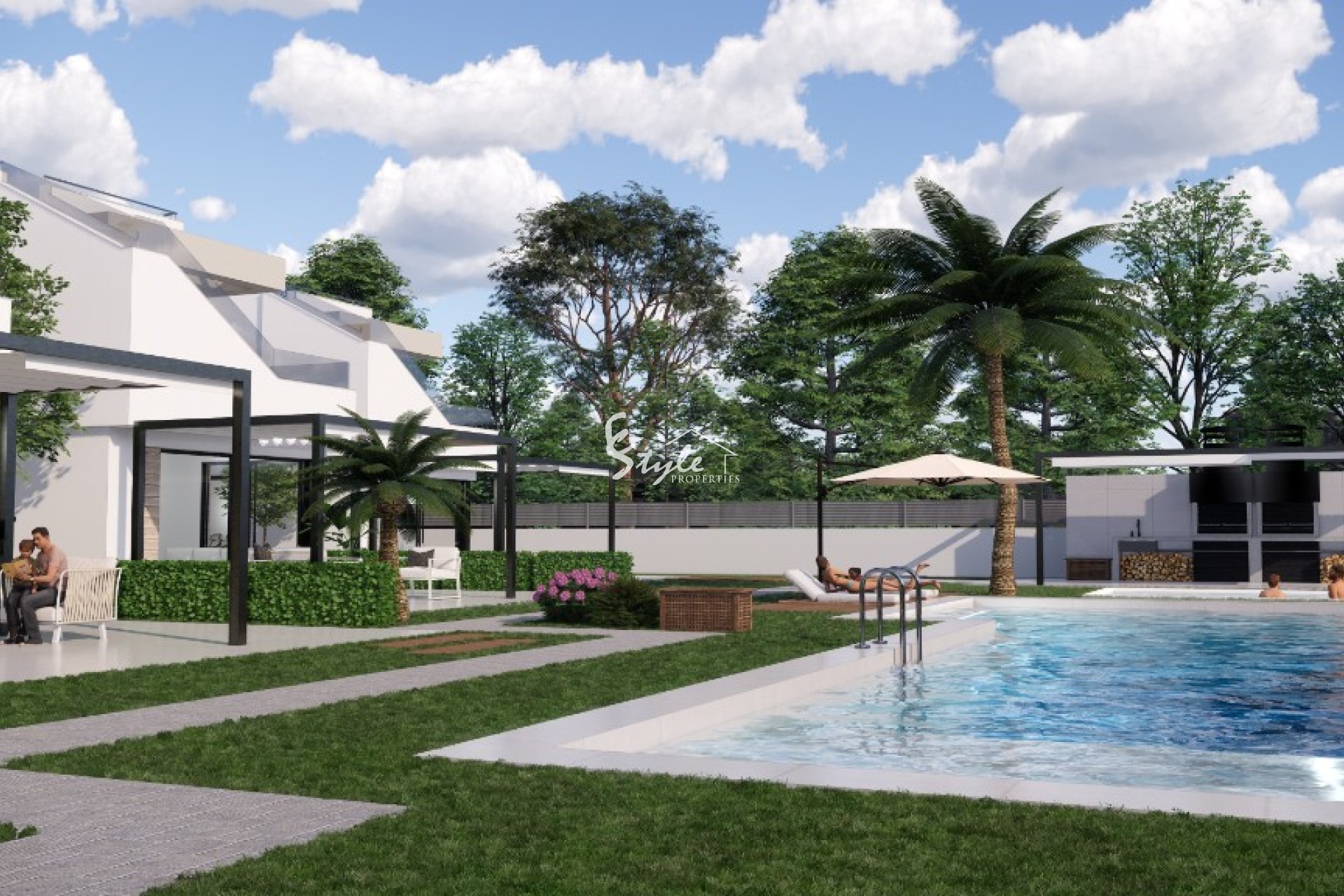 Снаружи у вас будет сад с частным бассейном, также есть бассейн для общего пользования.